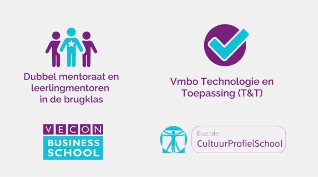 In je zoektocht naar een nieuwe school vliegen de nieuwe woorden je om de oren. Wat is bijvoorbeeld een combinatieklas? Wat betekent het dat het Wessel een CultuurProfielSchool en een Vecon Business School is? En wat doe je bij het vak Technologie & Toepassing (T&T)?